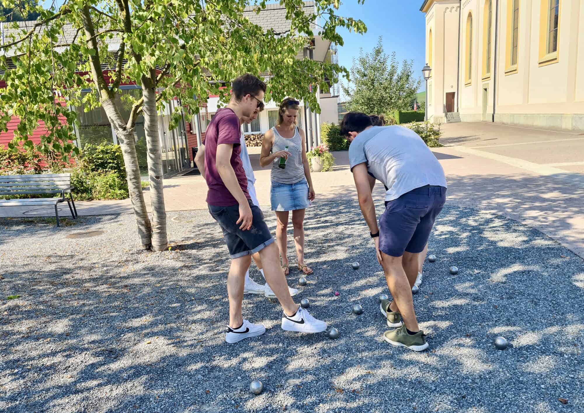 Am Nachmittag ging unser Programm auch schon weiter und wir kamen wieder in Menznau beim Kirchenplatz zusammen. Hier konnten wir in Form eines Turniers unser Können im Boule unter Beweis stellen. Der neue Titelverteidiger des Wanderpokals heisst Mathias, Gratulation!
