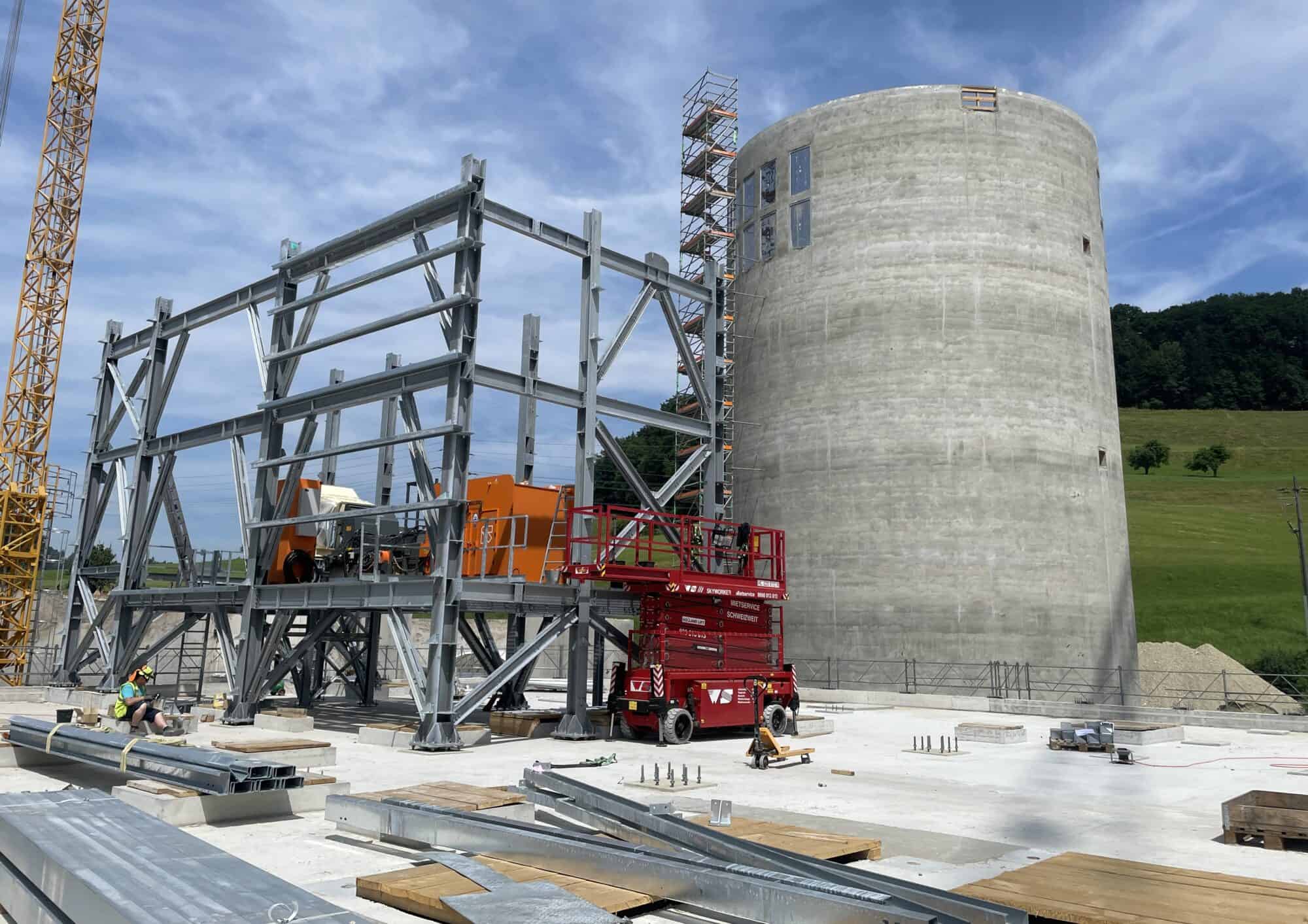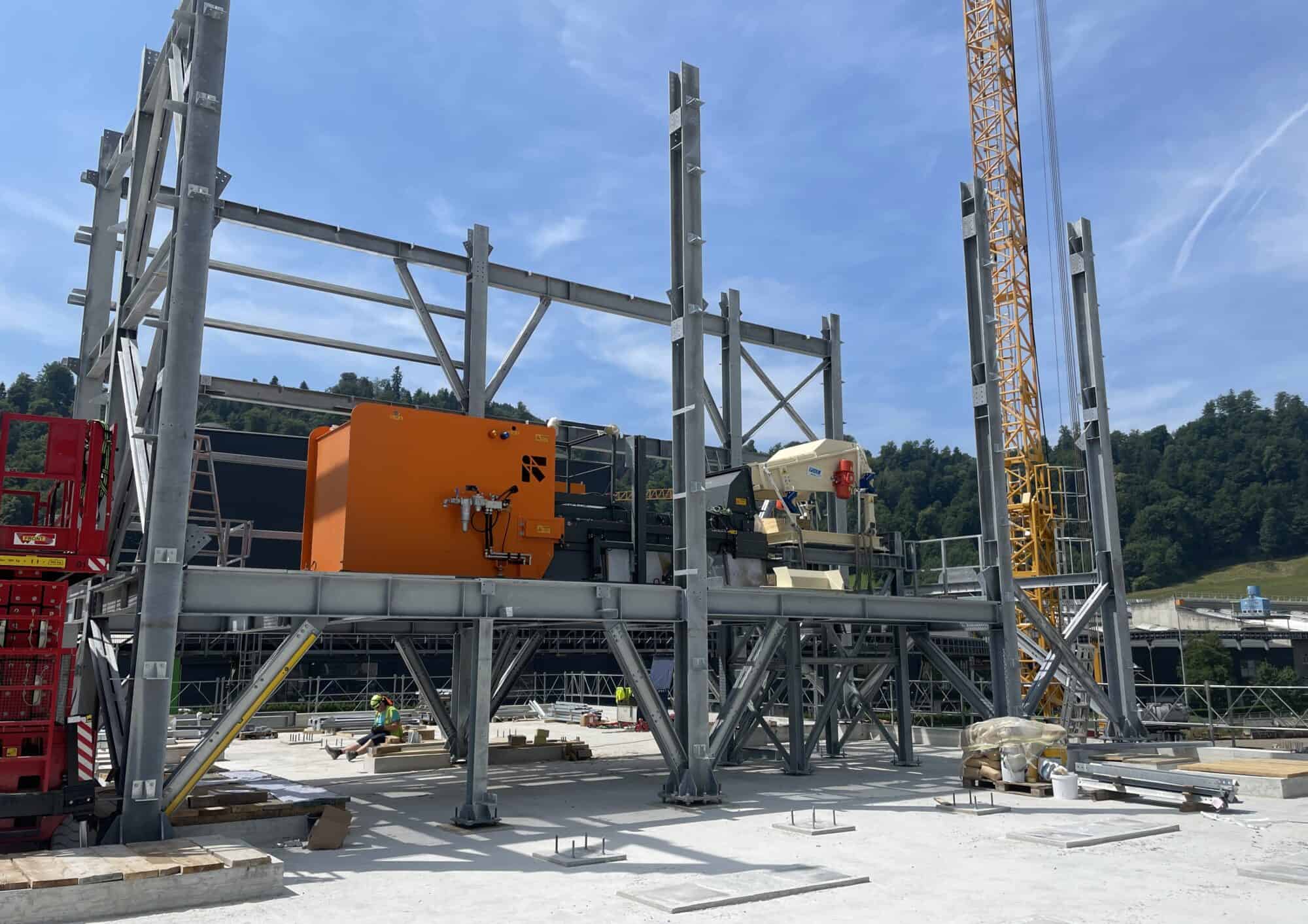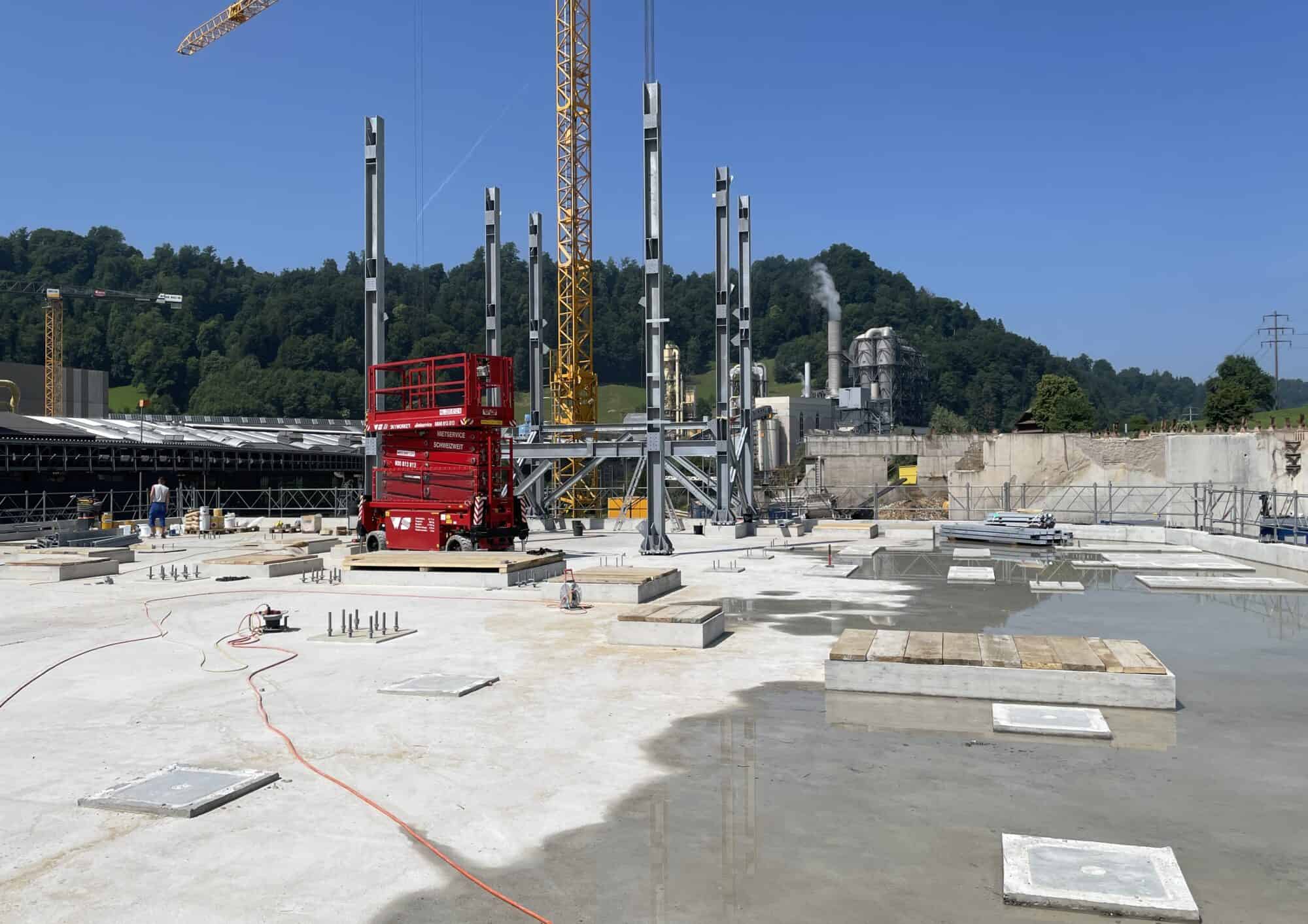 Beim ersten Baufeld, in welchem die Recyclinganlage erstellt wird, ist der Rohbau bald abgeschlossen und die ersten Stahlkonstruktionen für die kommenden Anlagen wurden bereits montiert.