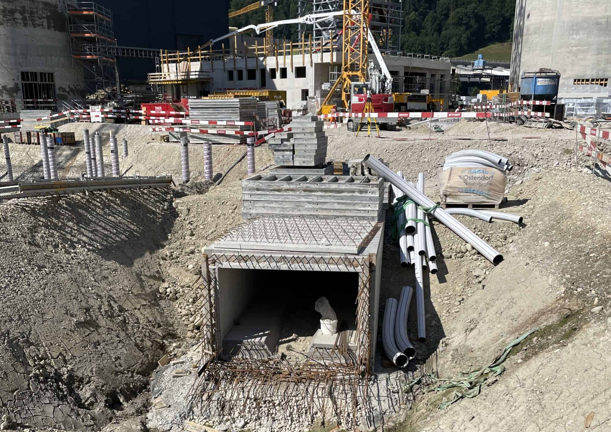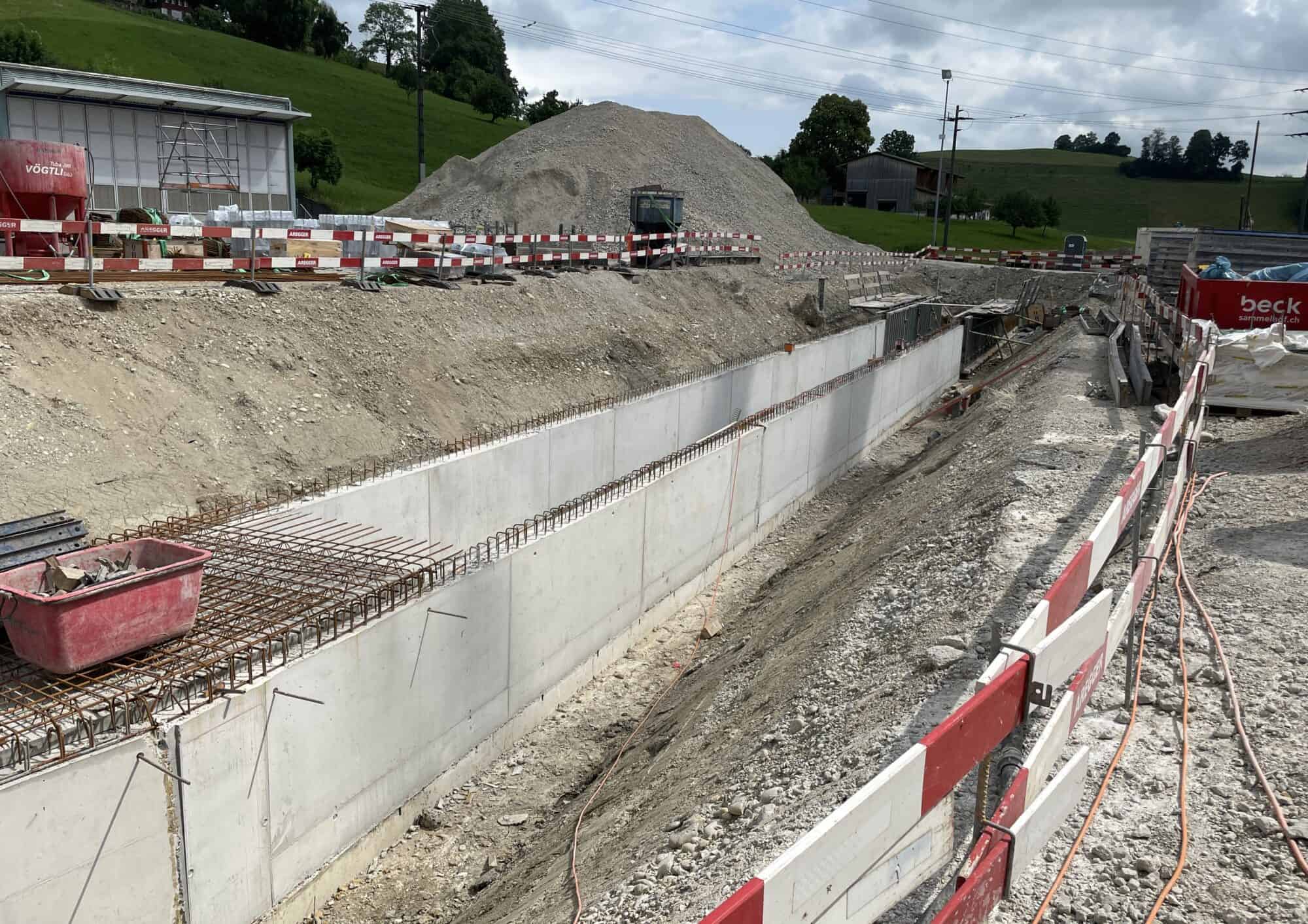 Zu guter Letzt darf man den Rötelberggraben nicht vergessen. Der eingedolte Bach, welcher quer durch das Areal verläuft, ist bereits zu rund drei Viertel fertiggestellt.