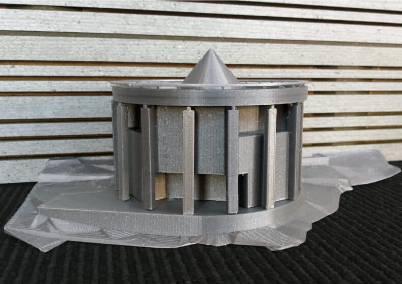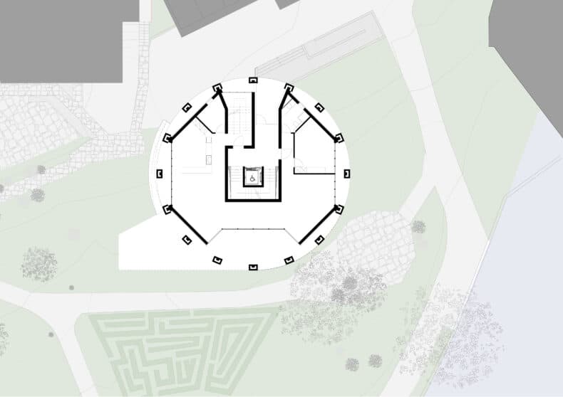 Der jüngste Gebäudeentwurf des Tessiner Architekten weist die Form eines Zylinders auf einem Sockel auf. Die Auflösung und die Reduktion der Mantelfläche auf lediglich 16 Säulen verleihen dem Gebäude eine tempelartige Struktur. Daher auch die Bezeichnung ‘Tempietto’.